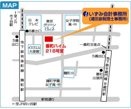 いずみ会計事務所は、地下鉄有楽町線麹町駅5番出口より徒歩2分。