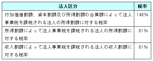 | @ | 納税義務者 法人事業税(所得割又は収入割)の納税義務者に対して課税する国税とする。 |