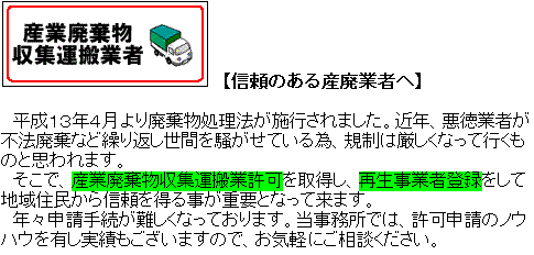 行政書士業務:産業廃棄物収集運搬業者
