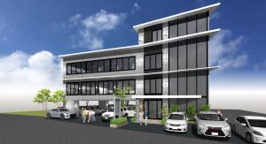 1Fが駐車場、2Fにテナントフロア、3Fに当事務所という構成です。
